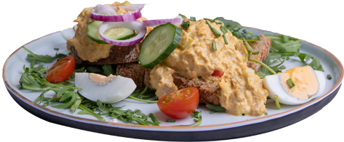 Proef de smaak van de zee met onze huisgemaakte tonijnsalade op een vers gegrild brioche broodje, met rucola, rode ui, cherrytomaat, komkommer en een gekookt ei.